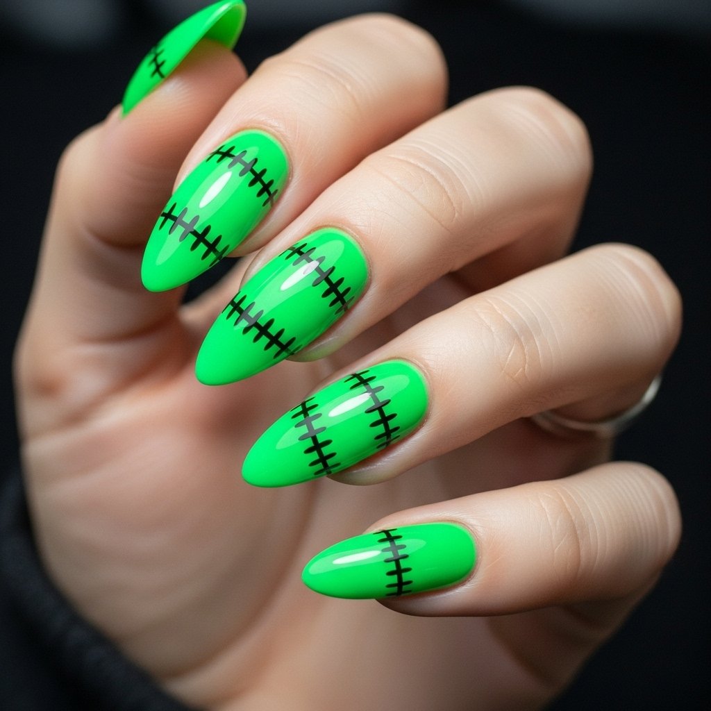Bright neon green with black stitch accents can instantly remind everyone of Frankenstein’s monster—fun and spooky at the same time.