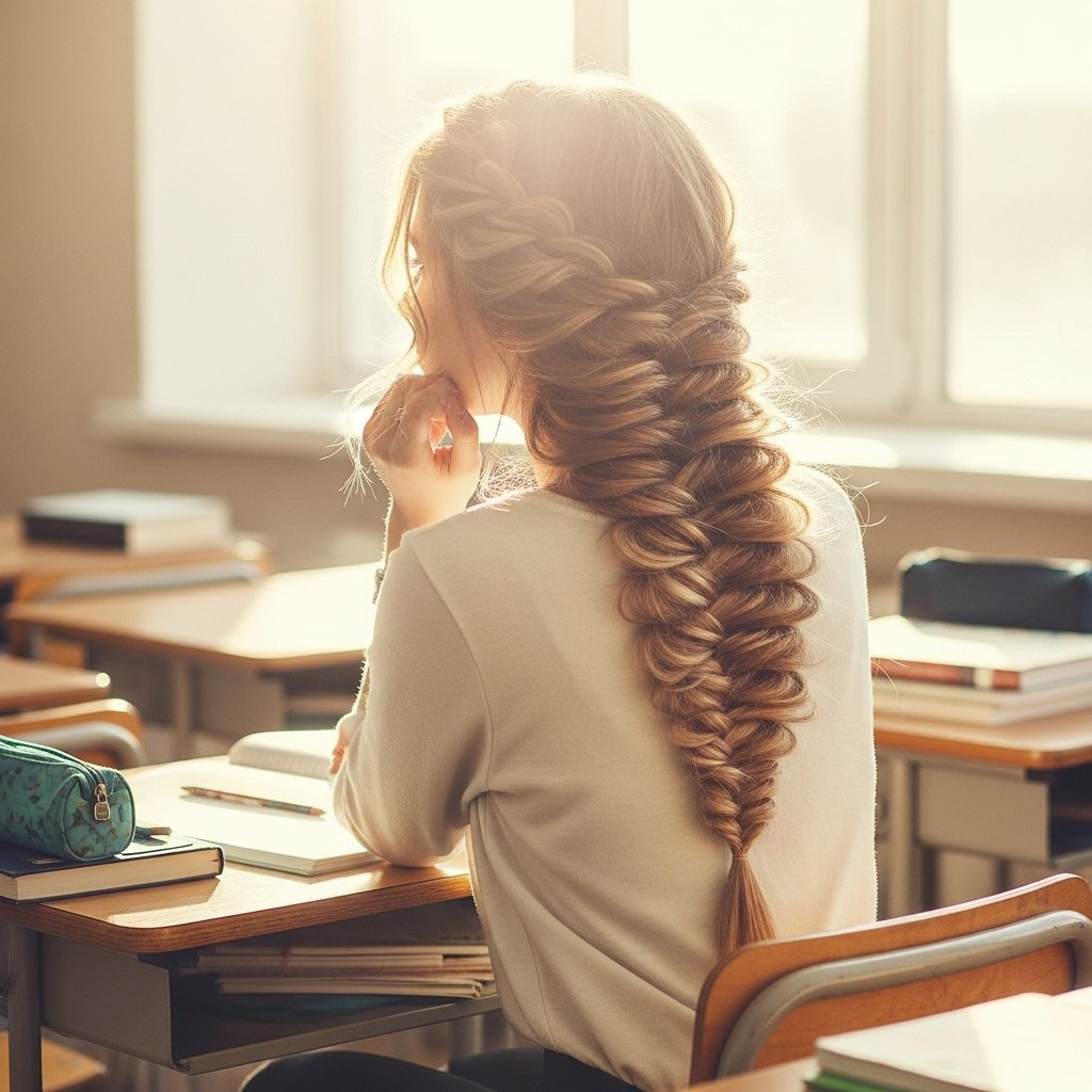 The fishtail braid is stylish and unique, making it a standout hairstyle for school day