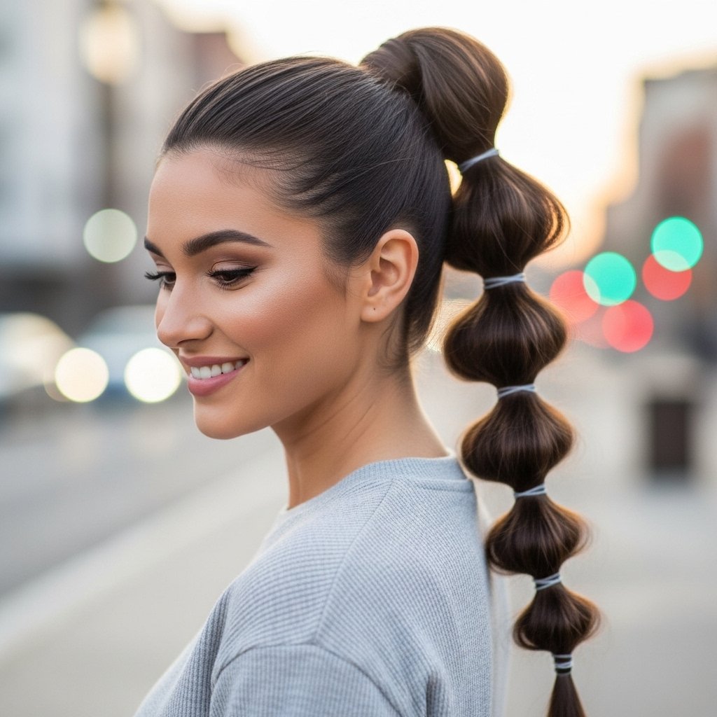Trendy and creative, the bubble ponytail adds a fun twist to the classic ponytail style.