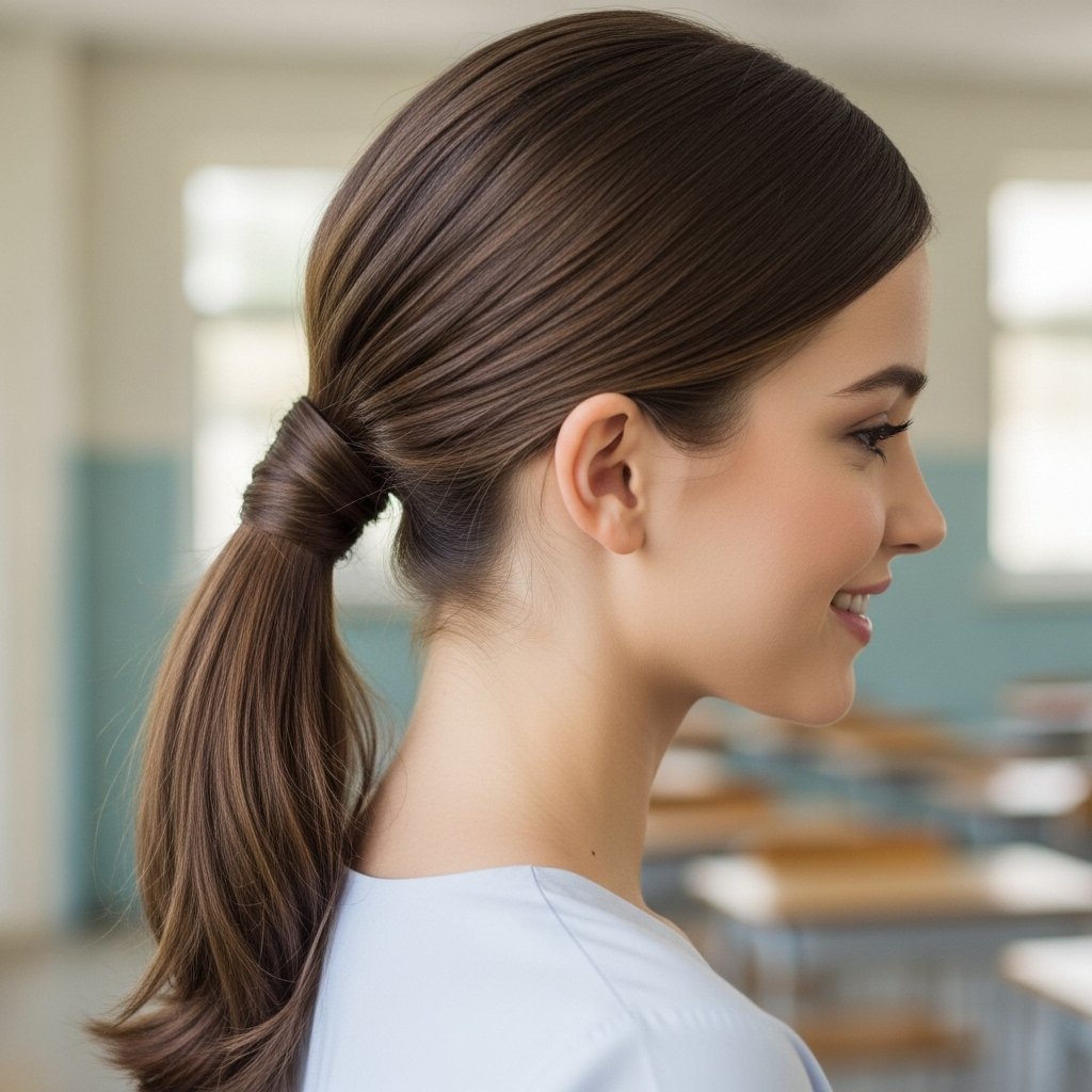 A timeless choice, the high ponytail is simple, sleek, and perfect for school days. Add a scrunchie or ribbon to make it more fun.